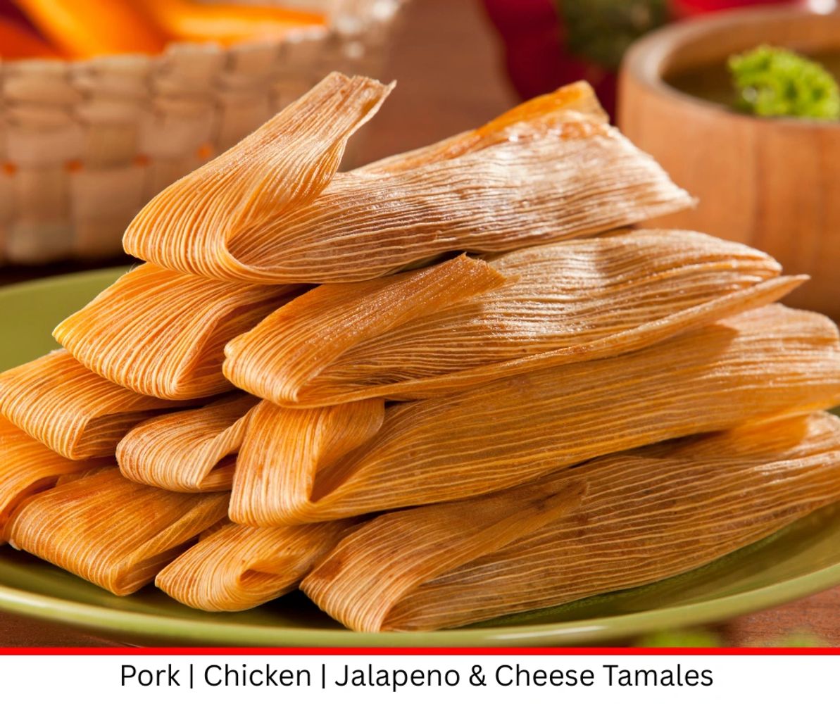 Our handmade tamales are wrapped in tradition and packed with flavor. Choose from savory pork, tender chicken, or spicy jalapeño with melty cheese. Sold by the dozen or individually—available only on weekends, while they last!